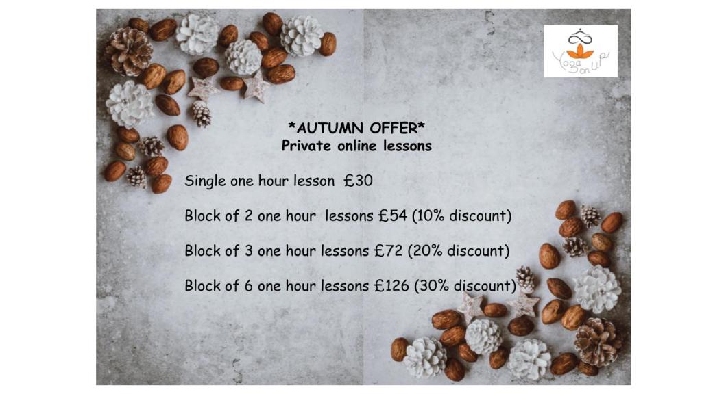 Gentle hatha yoga on-line classes resume next week. Make some time for yourself on your mat this autumn.